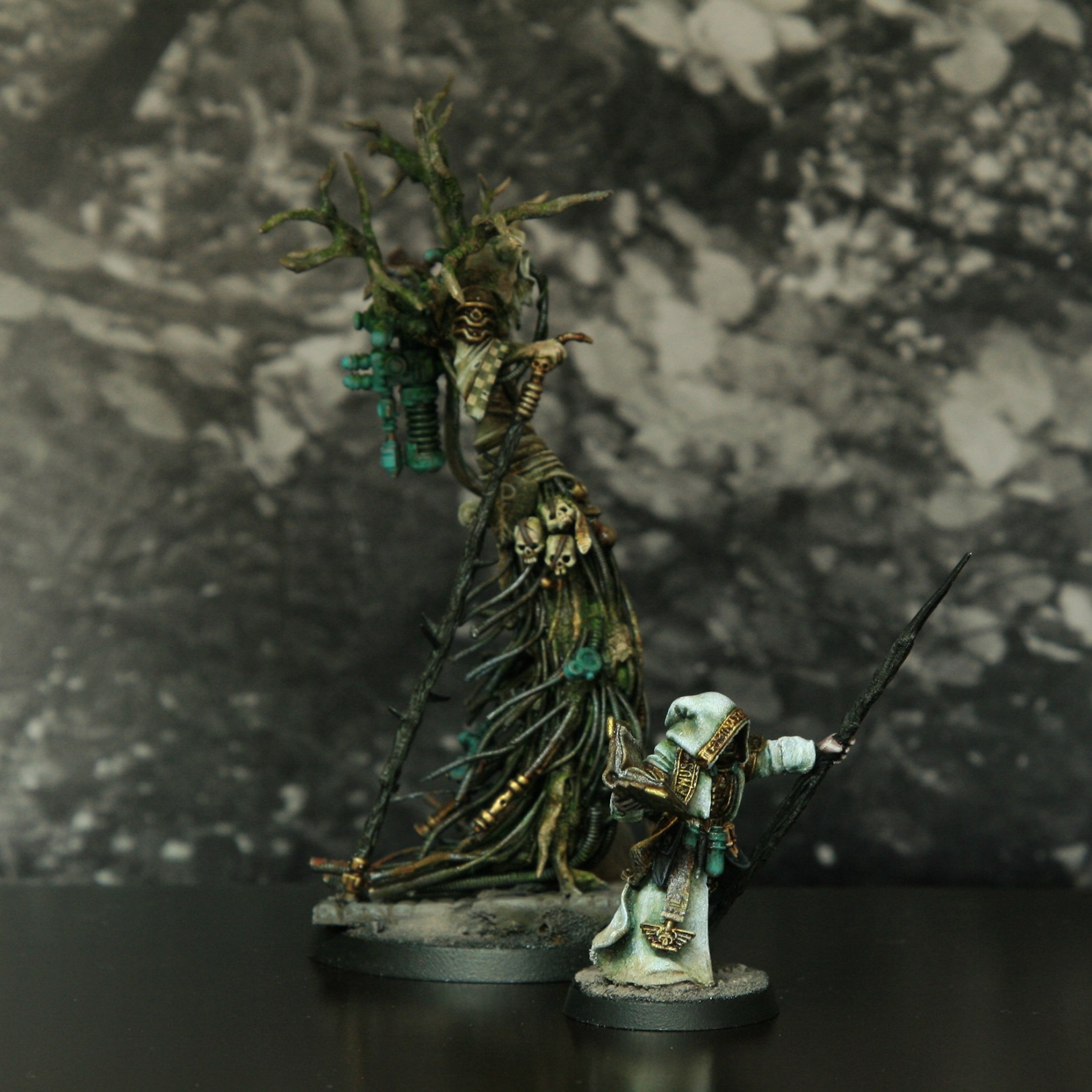 He has been painted in tones of white, cold green and gold to resemble the frosty and glimmering hallways of Neith.