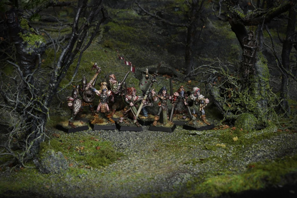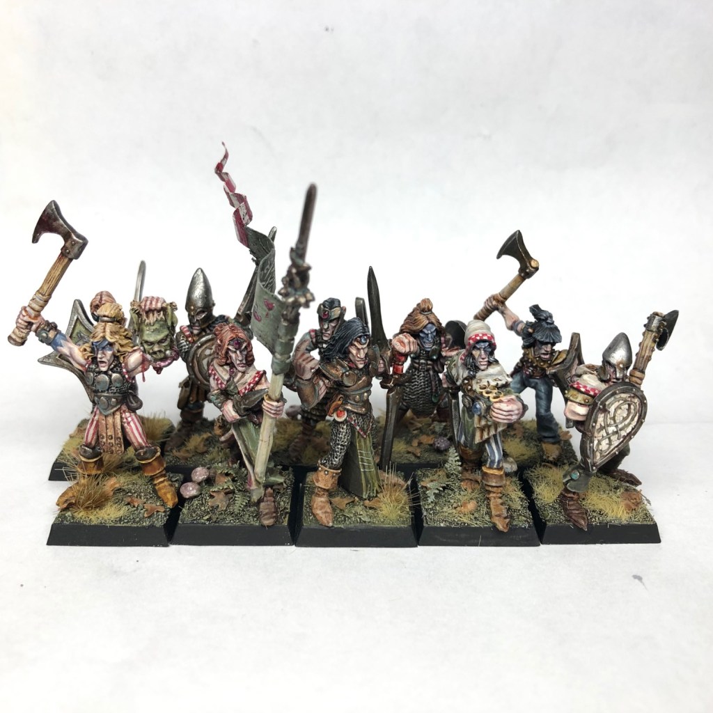 I decided to start the painting task from the fighter unit, which you can see ready painted above. Since I’m aiming to play a game of 3rd or 4th edition Warhammer Fantasy Battle with these, of course I went and put them on square bases.